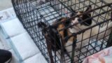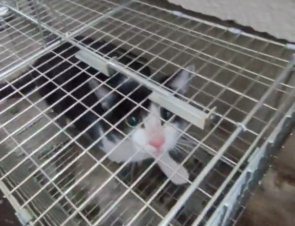 捕獲機からケージに移動する前に、洗濯ネットに入ってもらいました。